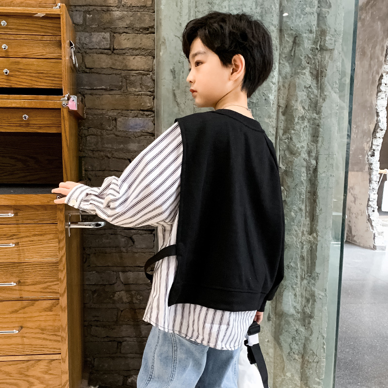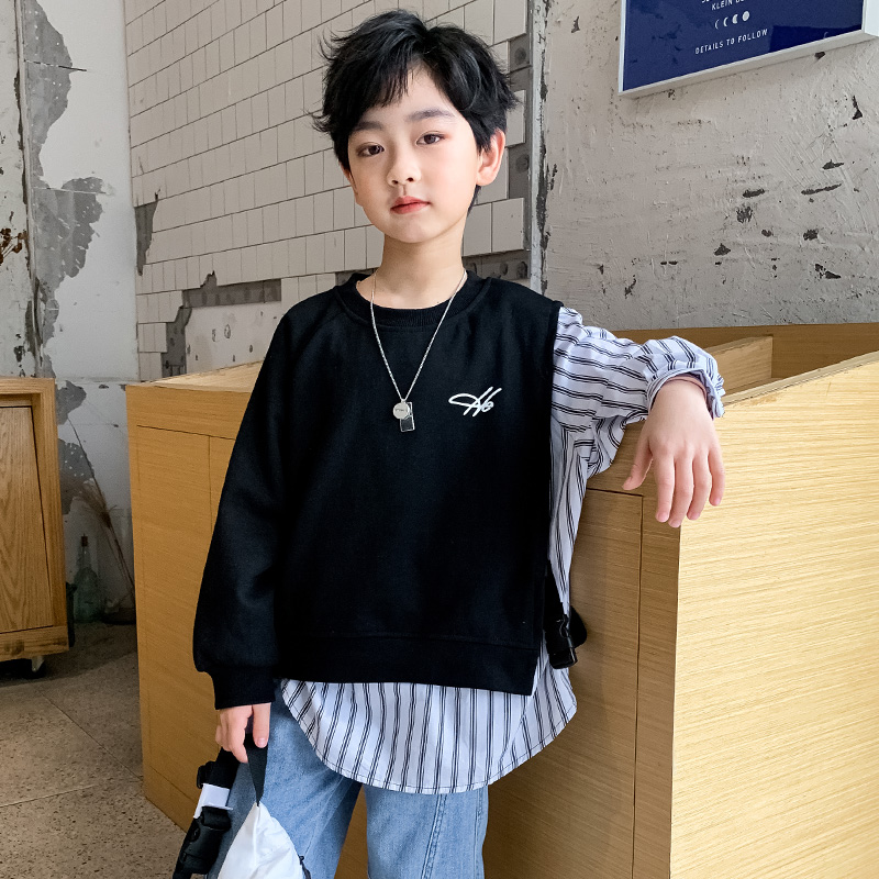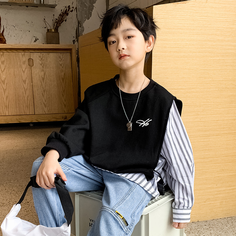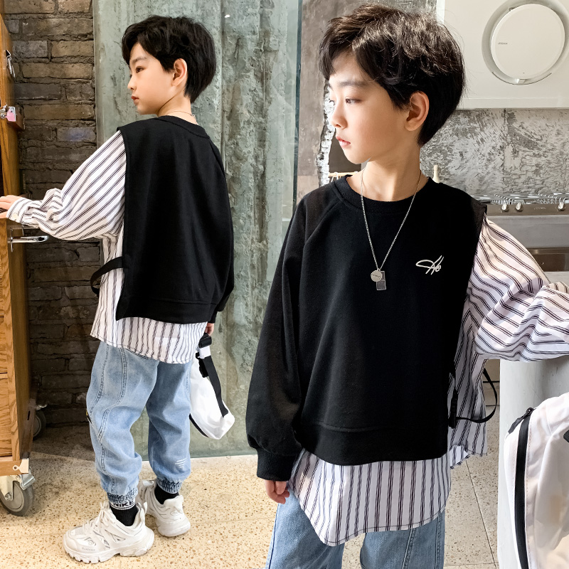 Boys spring and autumn fake two-piece sweater 2022 new middle-aged children's autumn clothes Western style cotton top children's handsome trend