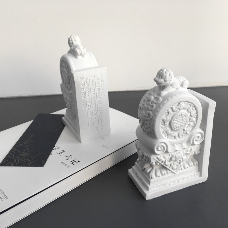 New Chinese style national style Wufu Baishoumen pier stone drum creative bookend porch home study desktop decoration ornaments