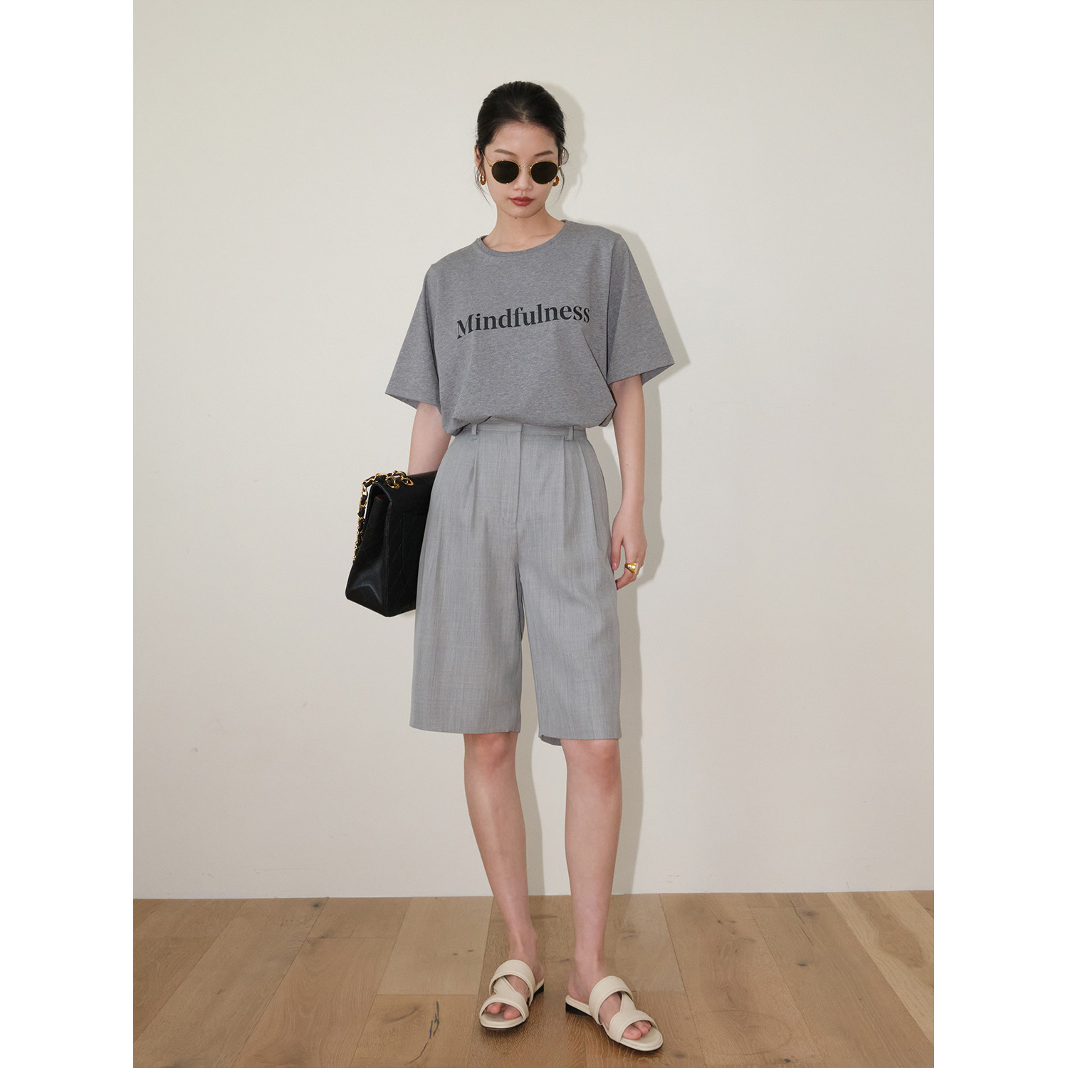MRS Studios Classic Basic series loose Thin Pure Color Slogan Design Letter T-shirt Short Sleeve