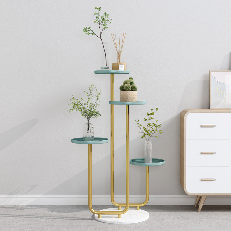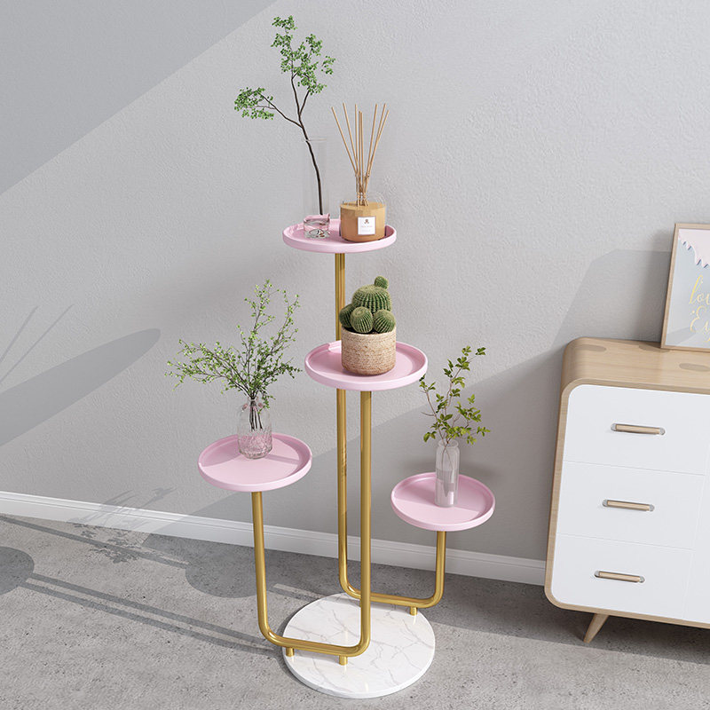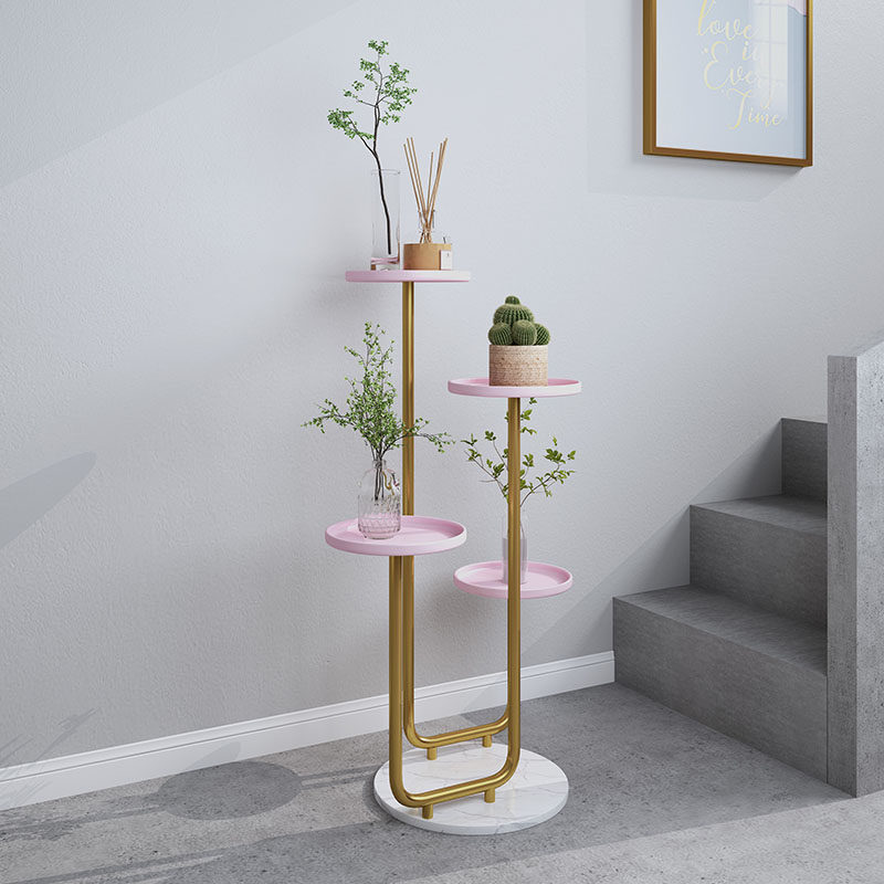 Shelf artifact balcony flower pot stand living room modern simple floor-standing iron round light luxury flower shelf