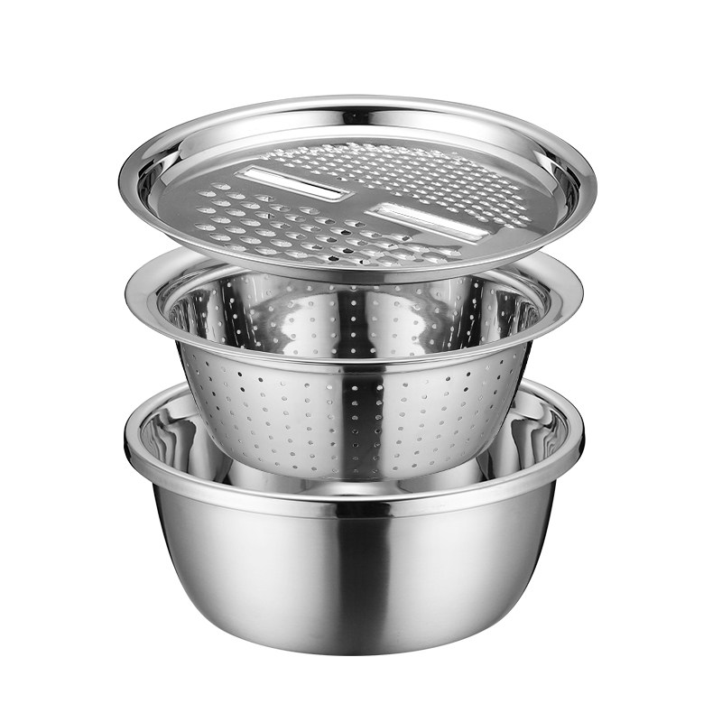 Stainless steel basin Washing vegetables planing raspberries Household kitchen drain basket bowl male and face egg drain basin Amoy rice fruit basin