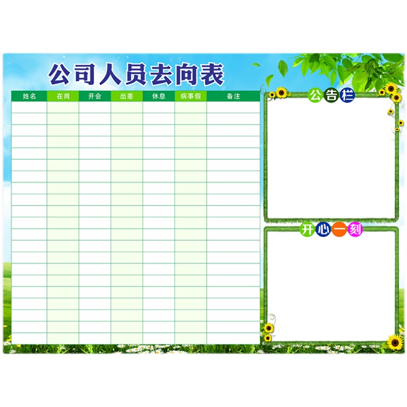 Customizable corporate office workers go to the public signs in the post-gang dynamic attendance management table soft whiteboard magnetic wall sticker