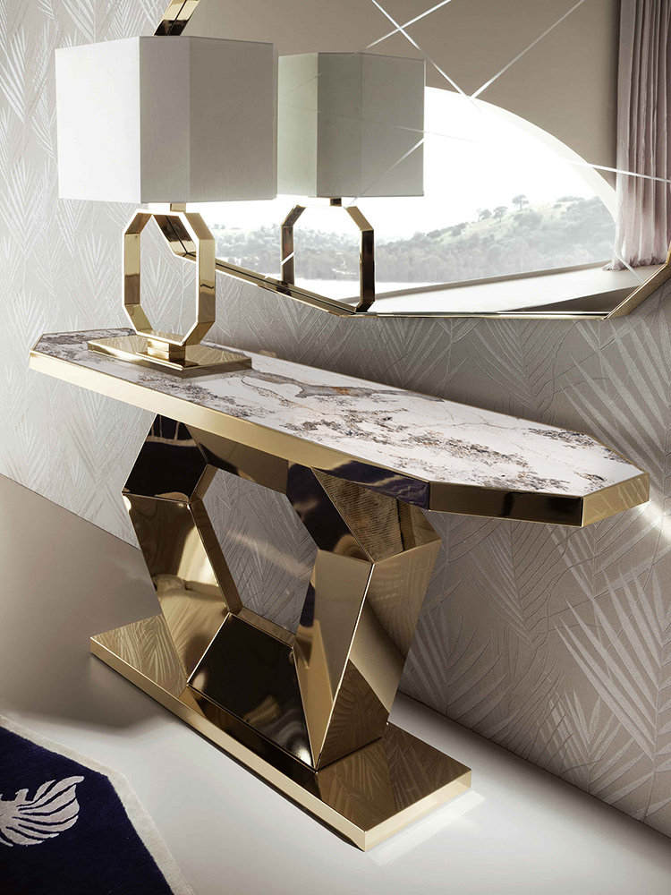 Light luxury style marble stainless steel entry porch table entrance hall aisle against the wall porch table corridor strip case decoration table