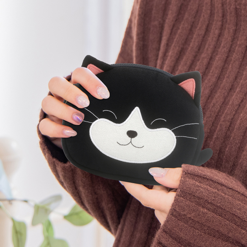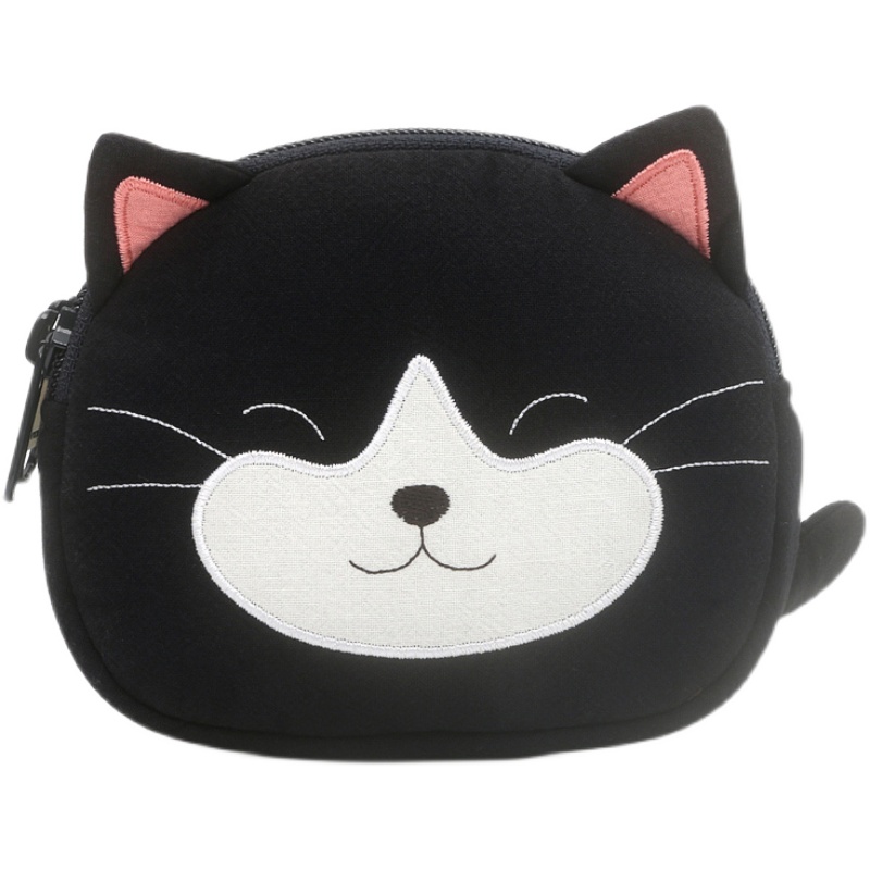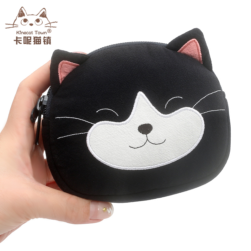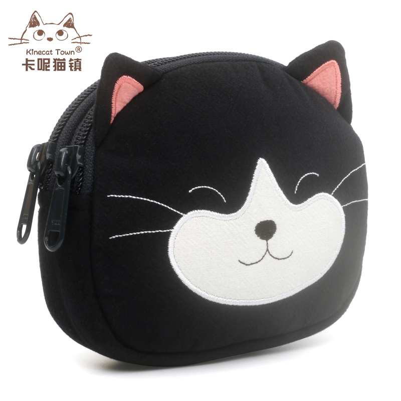 Japanese design KINE cat pure cotton cute cartoon kitty small cat zero money coin bag double zipped cloth art containing bag-Taobao