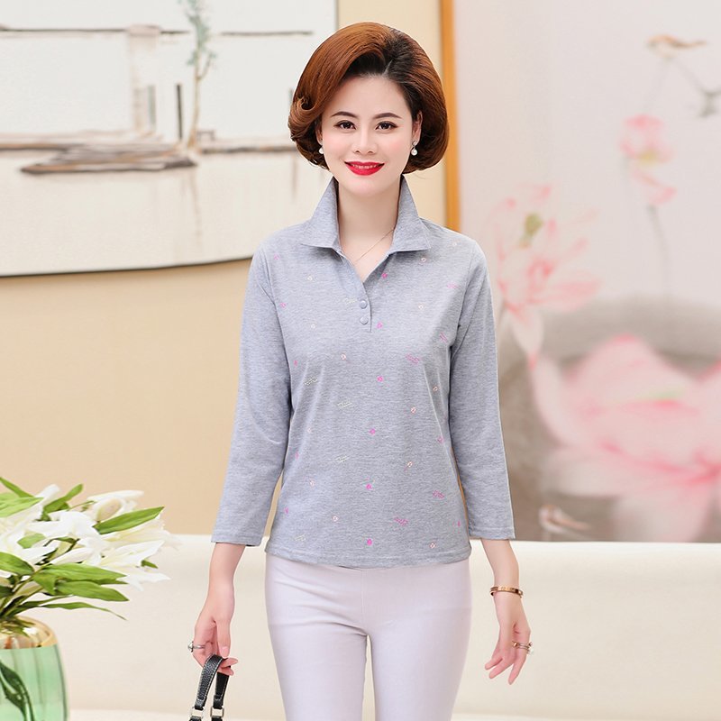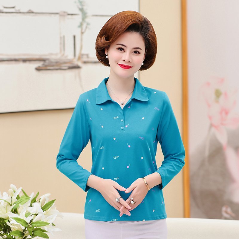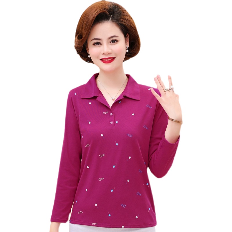 Middle-aged women's spring and autumn long-sleeved T-shirt 40-50 years old mother's wear elastic cotton autumn shirt sports sweatshirt