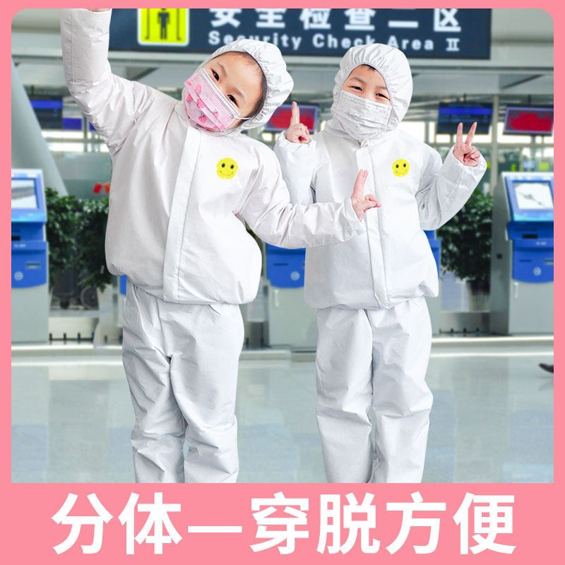 Child protective clothing with full body isolation coat aircraft with a thin disposable two-piece repetition of a child's isolation suit