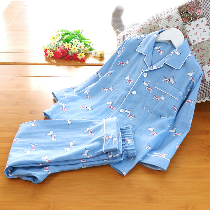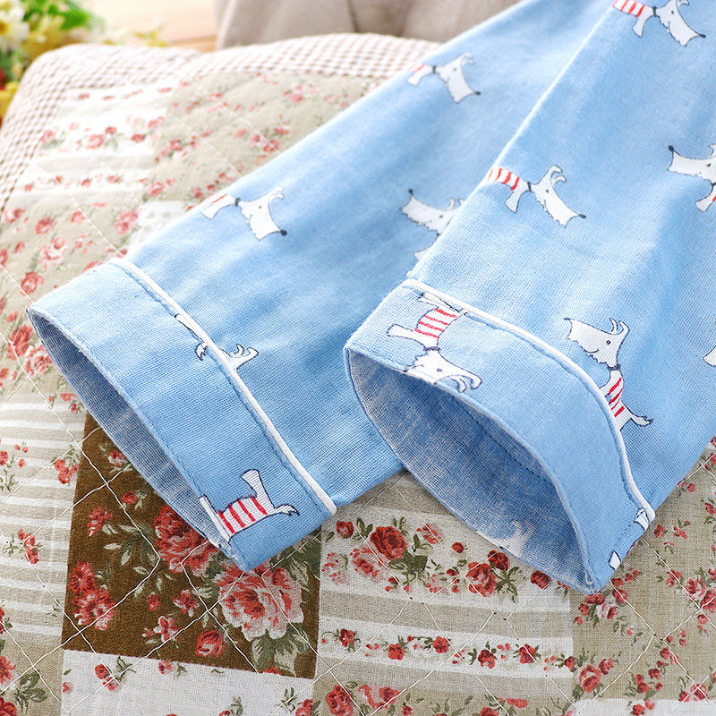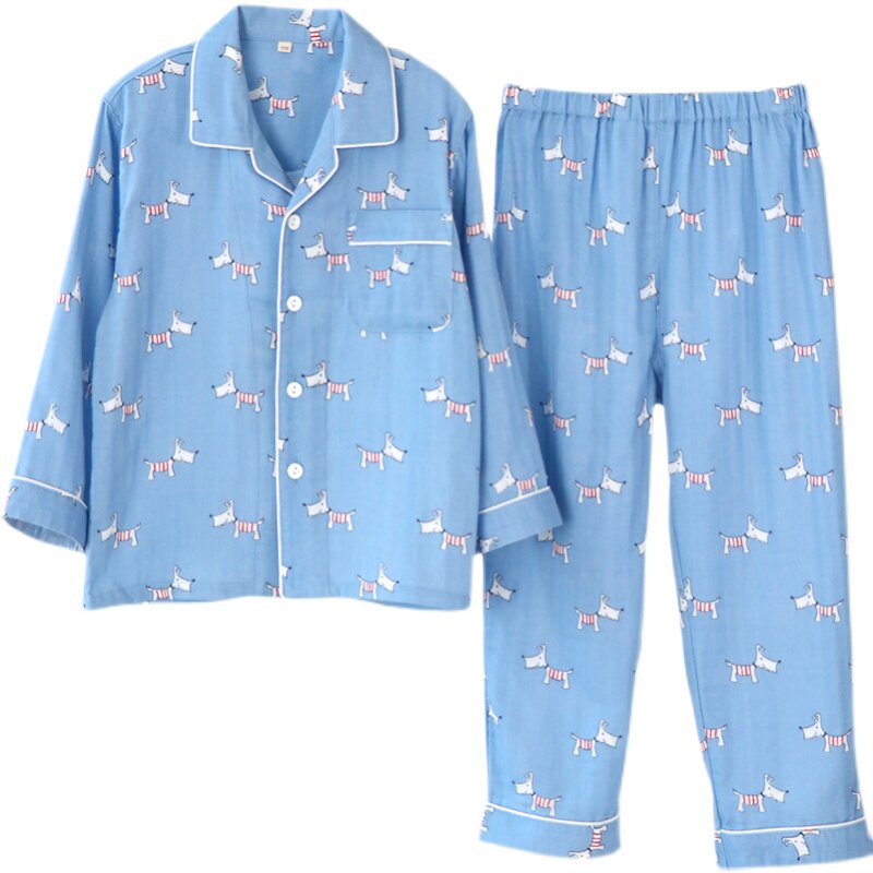 Fu Son Dog Boy Sleepwear Spring Summer Full Cotton Long Sleeve Long Pants Suit Pure Cotton Double Layer Gauze Soft And Breathable Home Clothing