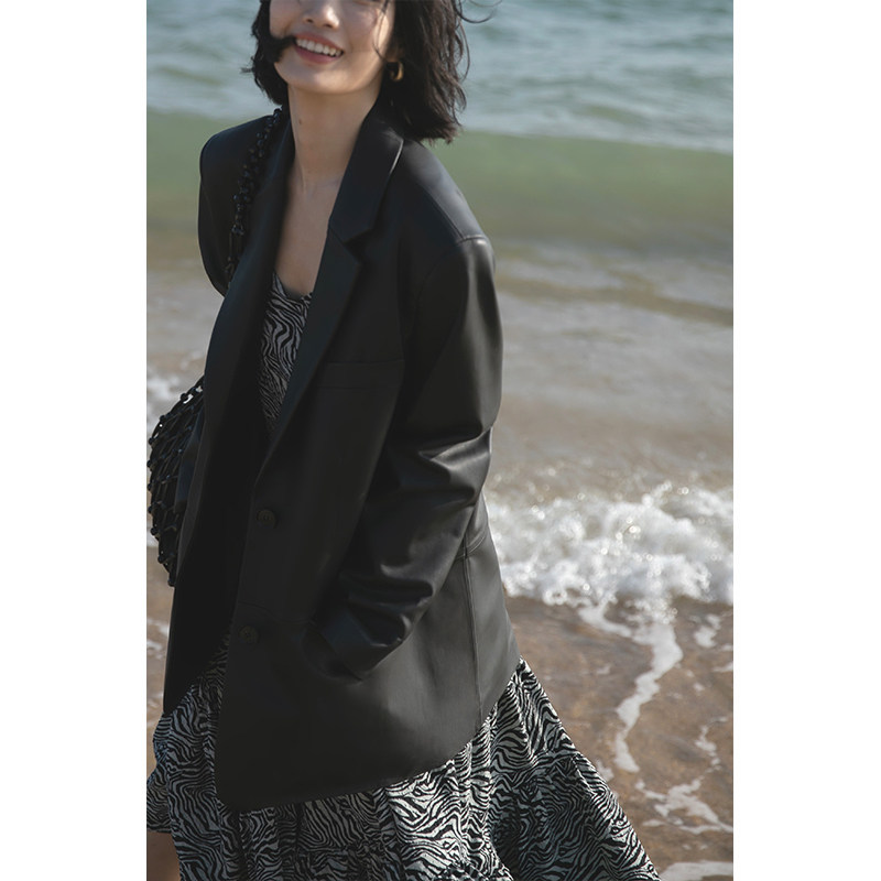 Ruishi Ruishi Radi Texture Little Sheep Leather Wide Shoulder Casual Suite Costume Woman Spring Autumn