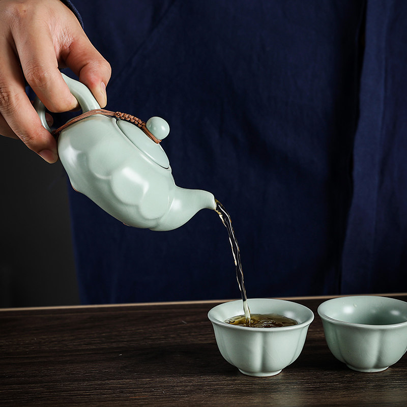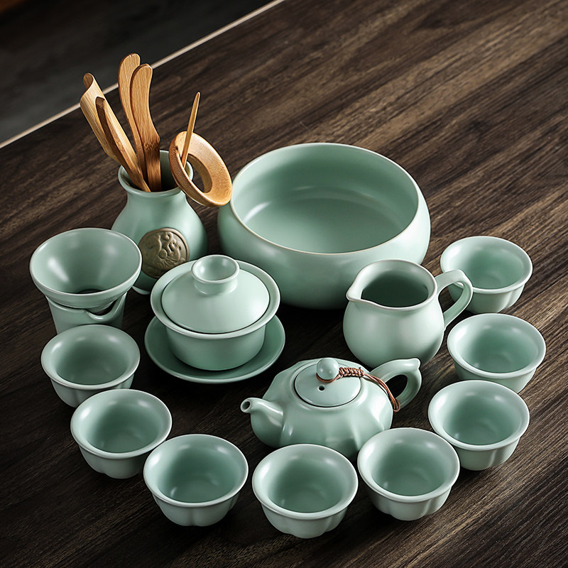 Ru kiln tea set home high-grade ceramic ice cracked office reception teapot tea cup tea cup tea ceremony