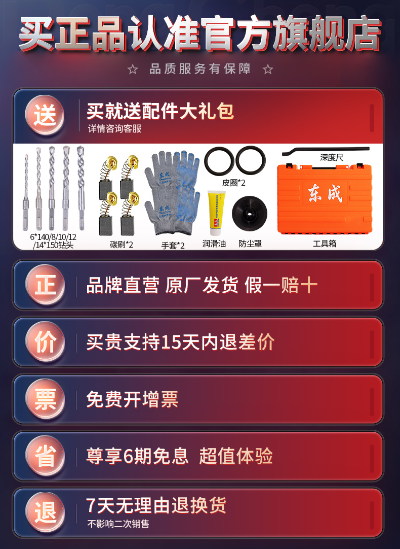 Dongcheng electric hammer electric pickaxe electric drill multifunctional high power impact drill industrial concrete household power tool electric hammer