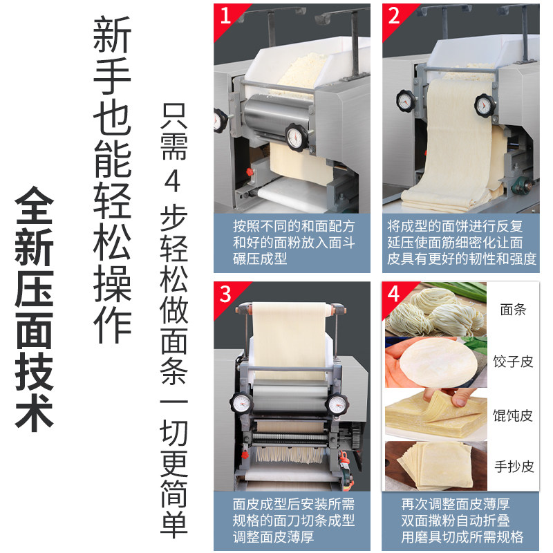 Ordinary model (including 2 noodle knives) Upgraded model (including 2 noodle knives) Solid pressure roller model (including 2 noodle knives) Single group climbing rod noodle machine Double machine head noodle machine Three groups of roller skin pressing machine Three groups of roller stacked noodle machine Four groups of roller stacked noodle machine Five groups of noodle machine Export type stainless steel noodle machine Speed regulation flour spreader Flour knife Increasing pressure roller noodle machine Custom noodle knife