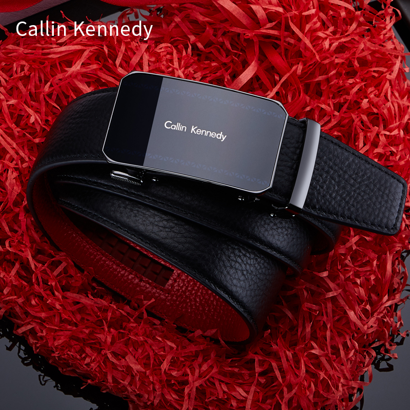Callin Kennedy red belt men's genuine leather Rabbit year zodiac year trouser belt new wedding belt gift