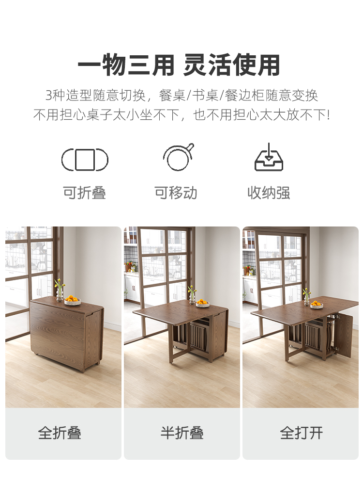 Solid wood folding dining table home small apartment dining table rectangular dining table and chairs foldable folding table dining table