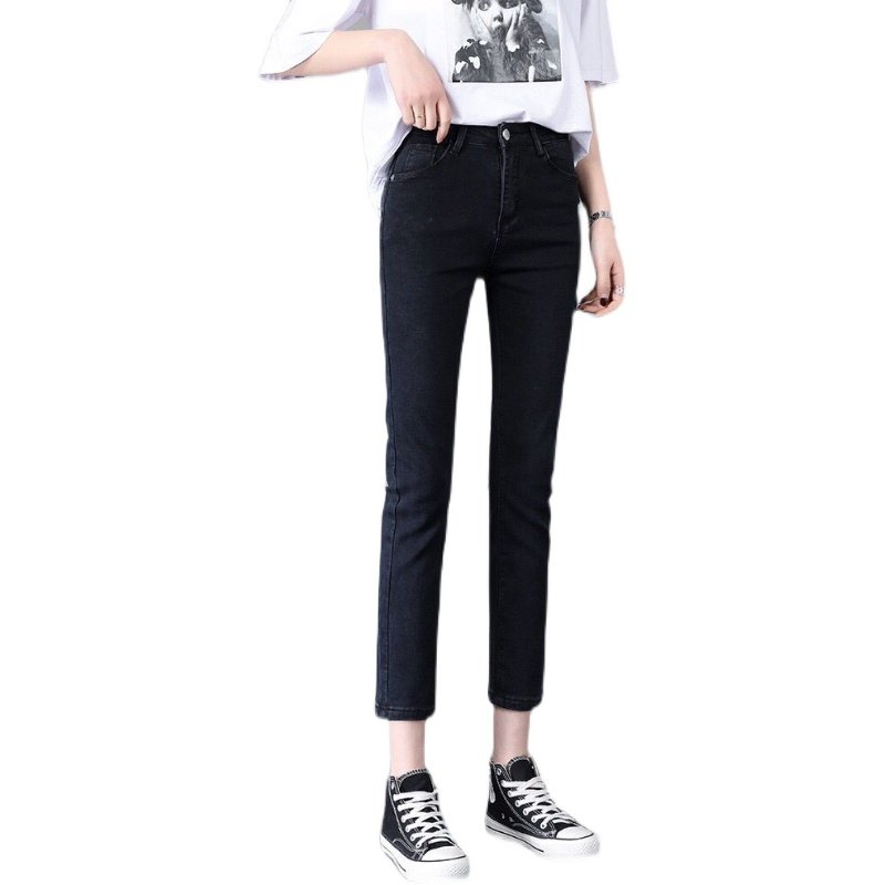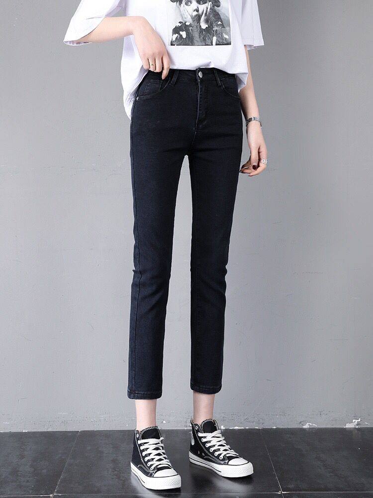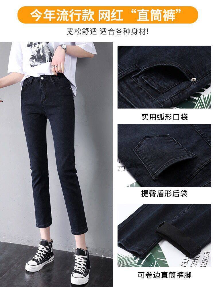 Black straight jeans women's nine points high waist thin loose stretch 2021 summer thin new small cigarette tube pants