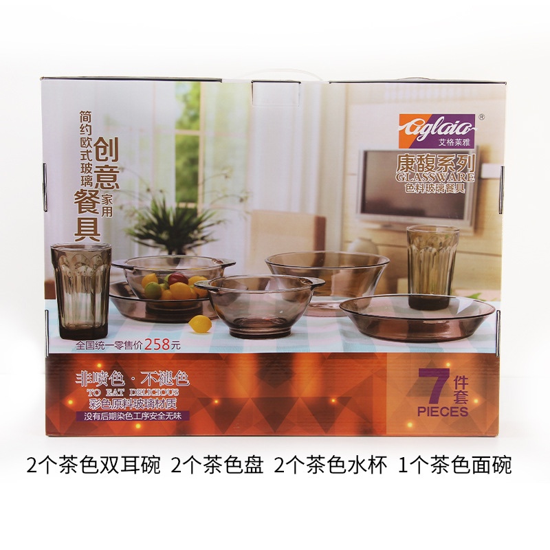 Transparent brown amphora bowl salad bowl breakfast cup water cup noodle bowl Nordic tableware set amber promotional gift