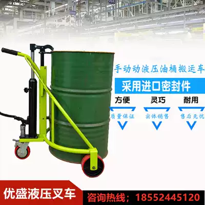 Oil barrel handling stacker hand push mouthpiece type iron plastic bucket manual hydraulic loading and unloading lift car round bucket transport pull cart