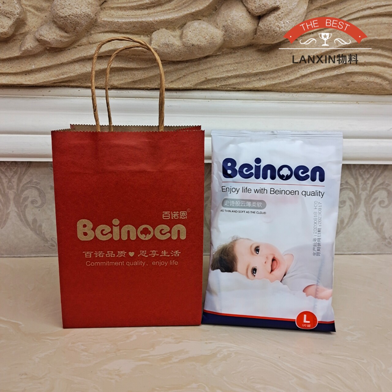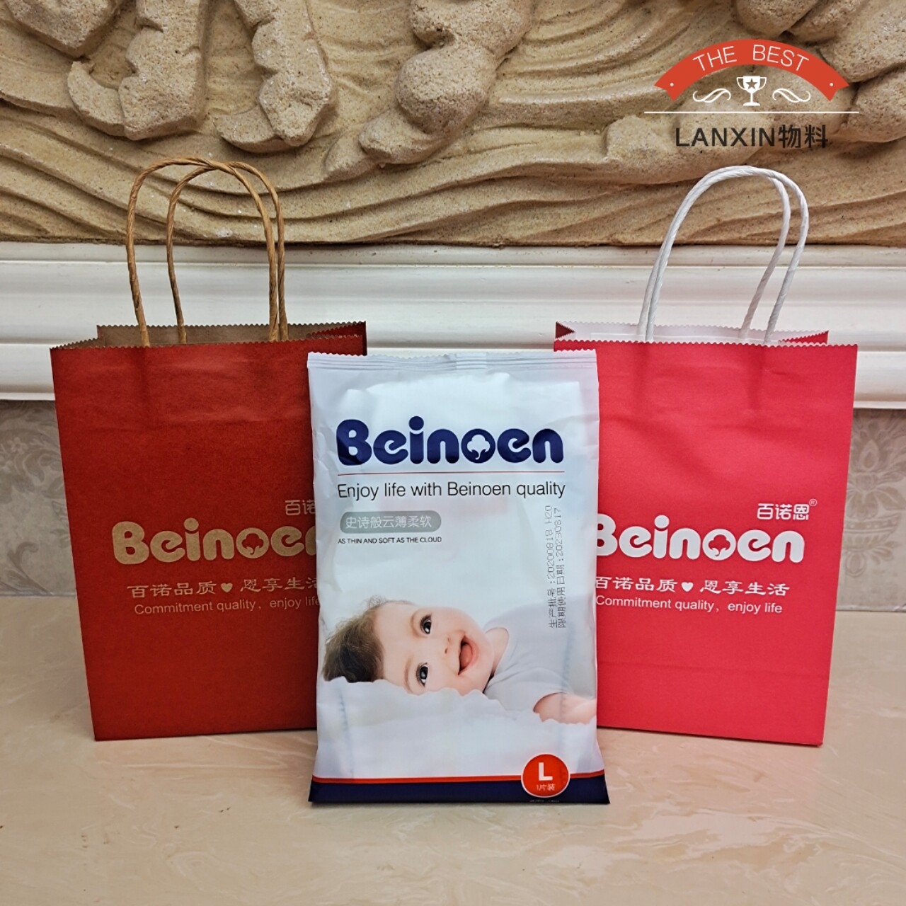 Bainuoen small red hand-held gift paper bag gift box bag push material store 10