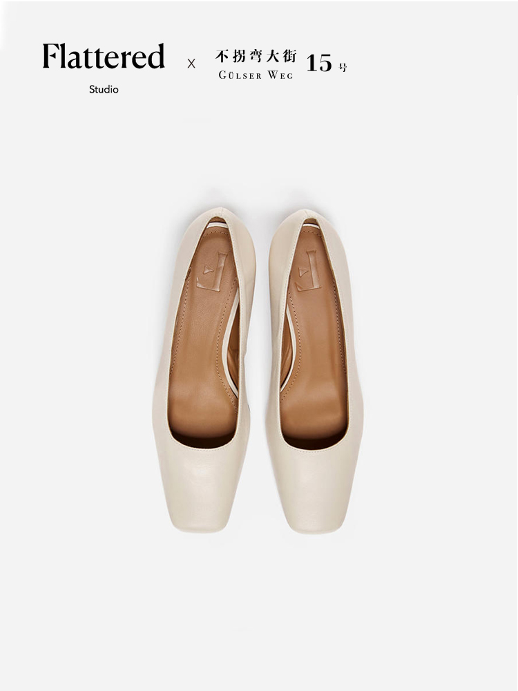 15 No Bend Street Flattered ) Mia Cream White Solid Soft Leather Ladies Women's Square Toe Shoe