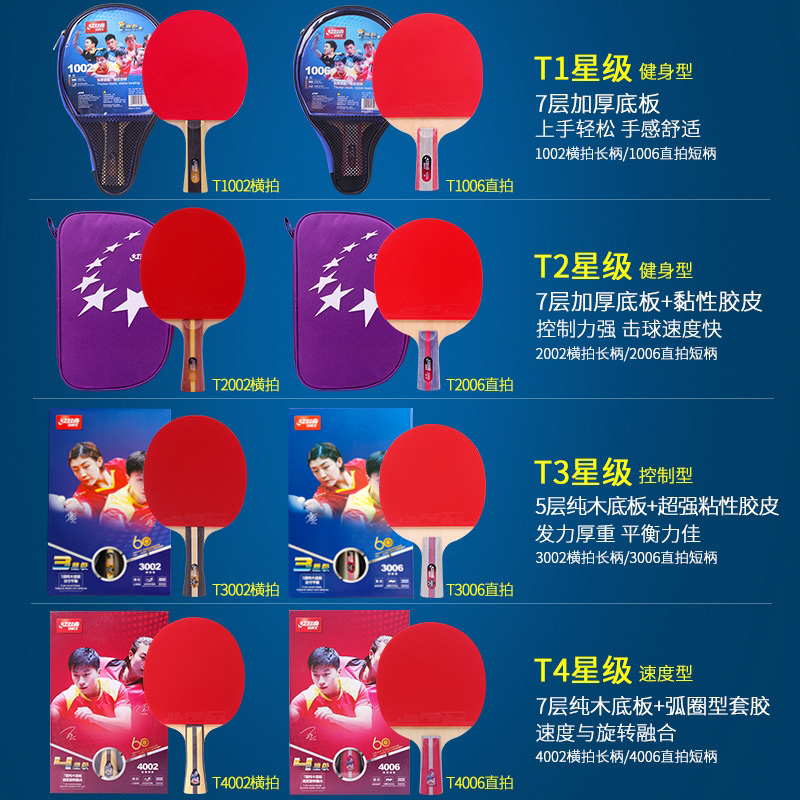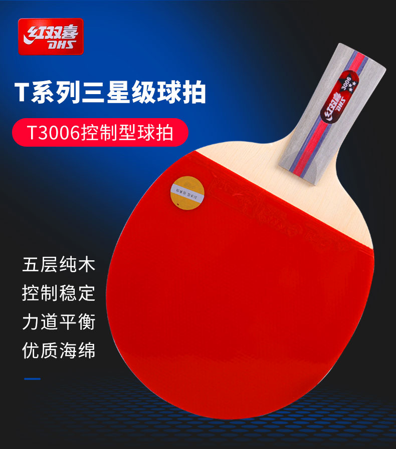 Double Happiness table tennis racket Samsung 3-star T3002 T3006 straight shot horizontal shot double-sided reverse glue fitness type
