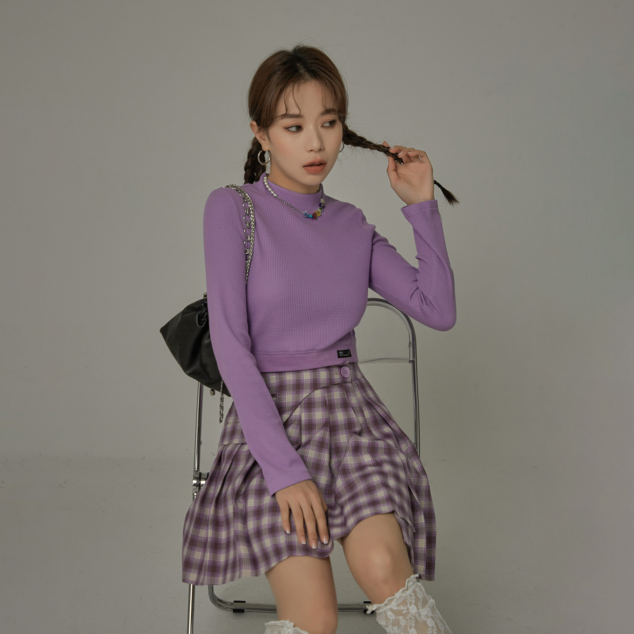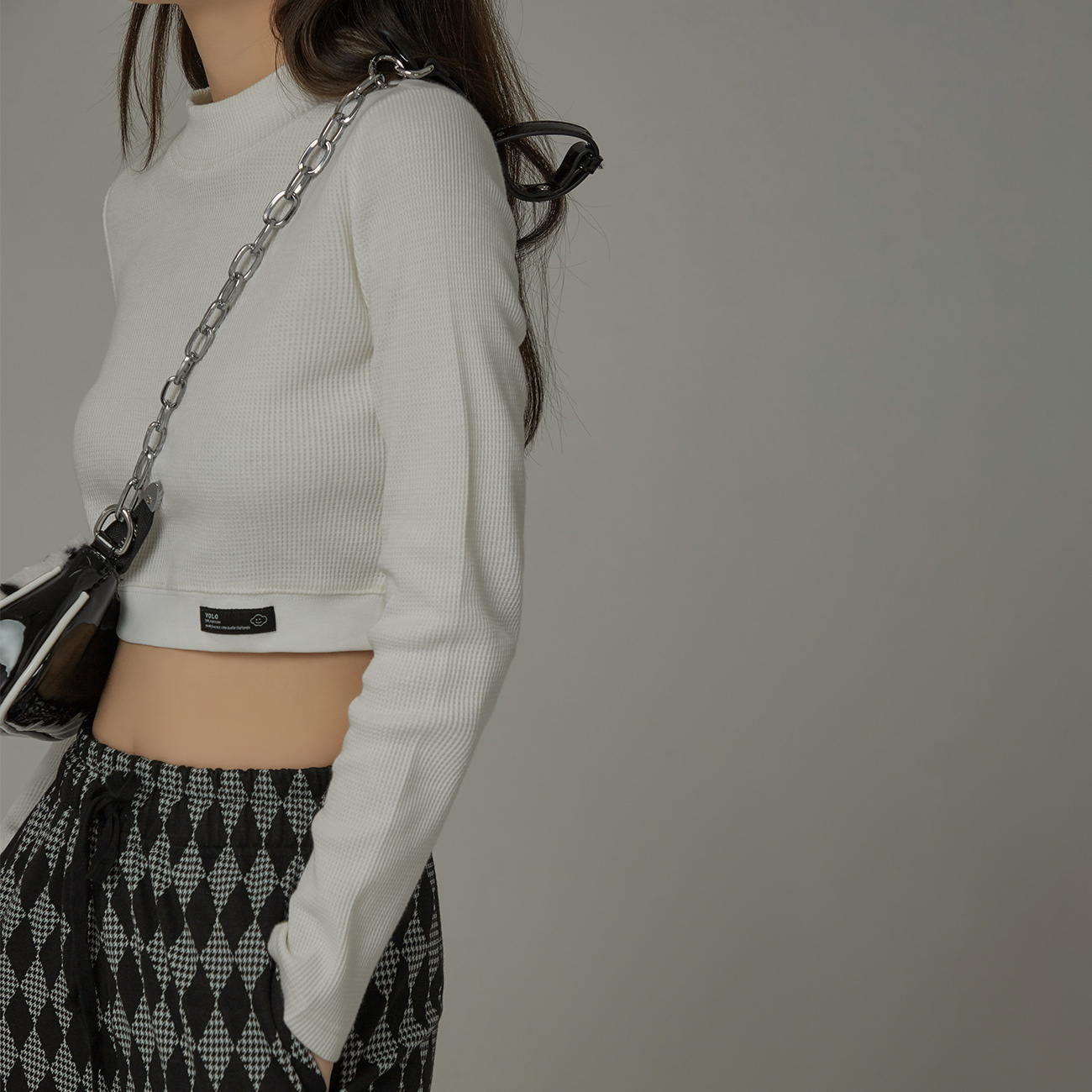 CHUU sweet cool bm top women's 2022 autumn new ins tide Hong Kong style short section long-sleeved semi-high collar bottoming shirt T-shirt
