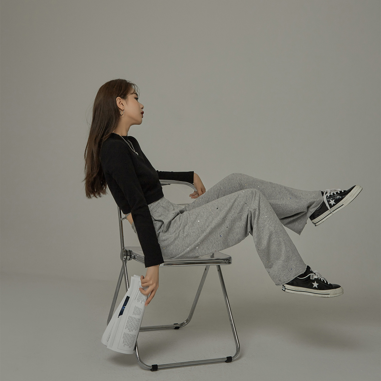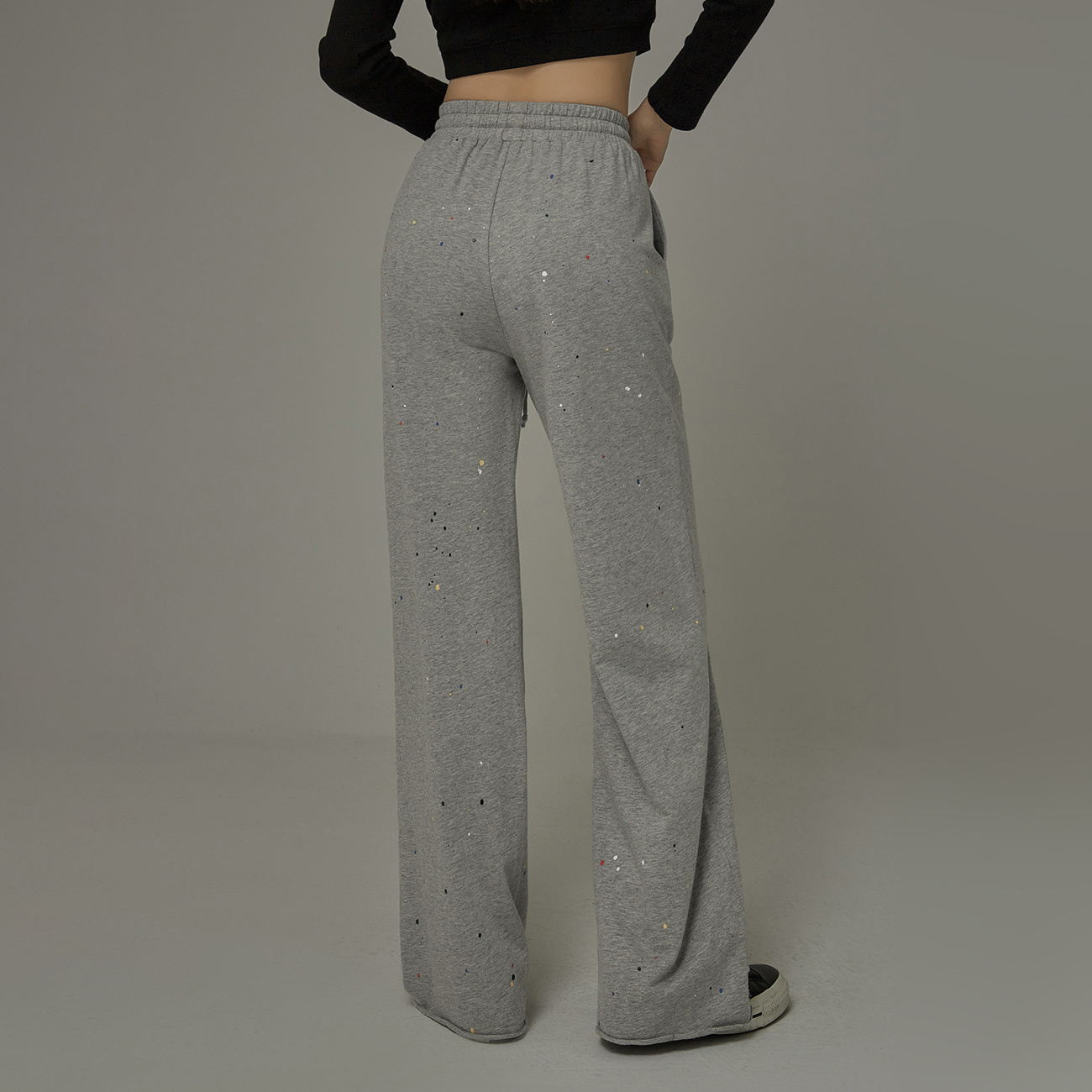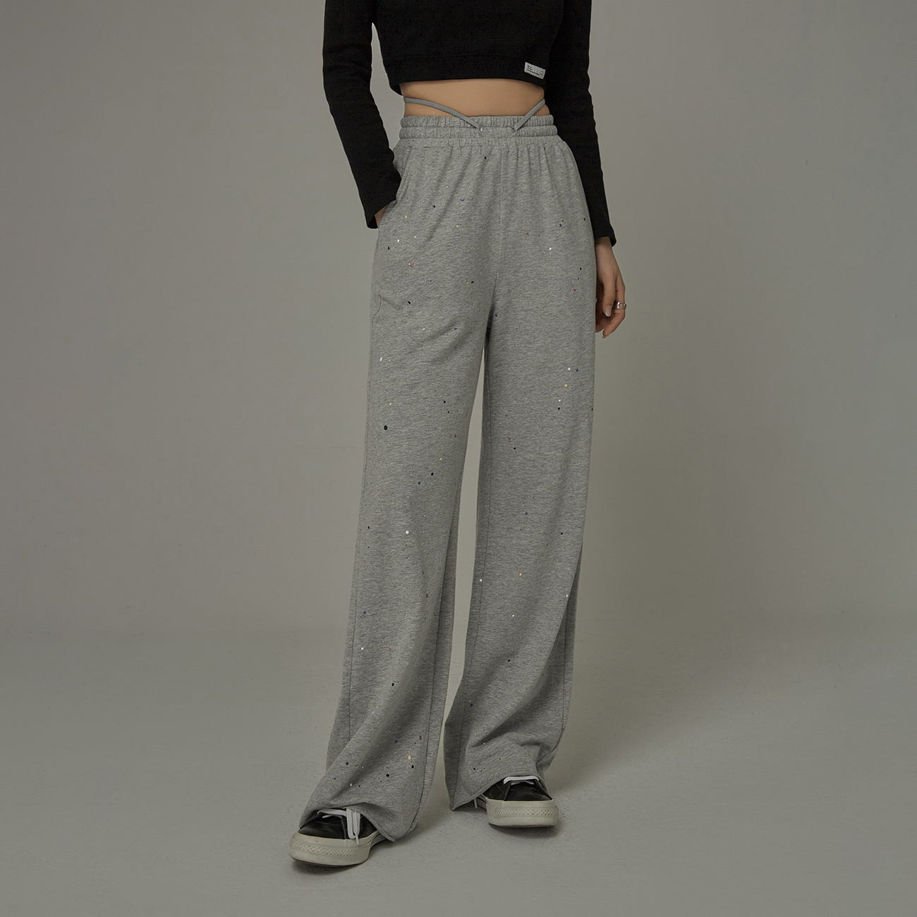 CHUU Lacquered Dot Grey Sports Pants Woman 2022 New Spring Loose Straight Drum Pumping Rope High Waist Display Slim Casual Pants