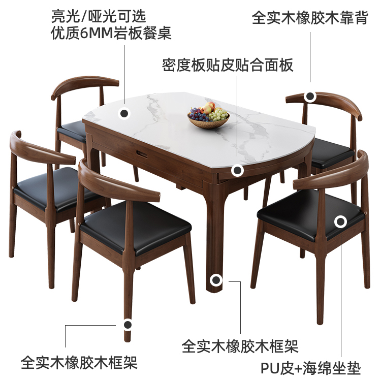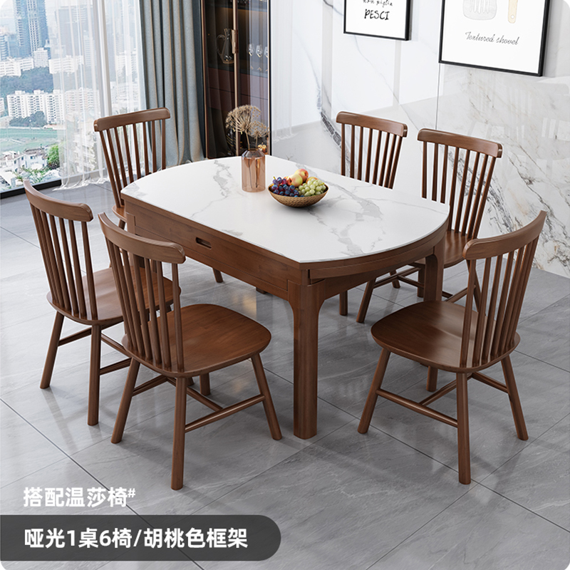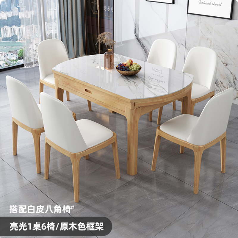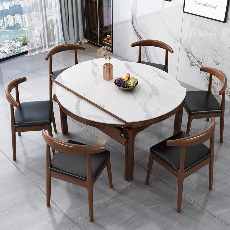 Nordic rock board dining table and chair combination modern minimalist retractable folding dining table variable round table home small apartment