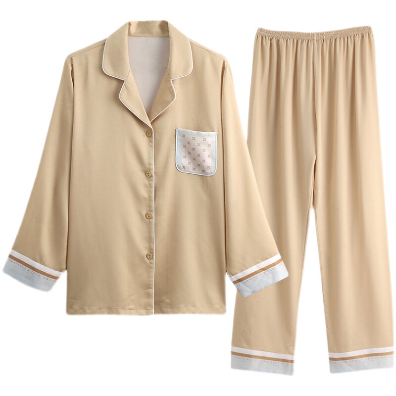 IIZZINI 2022 pyjamas women's spring and autumn long sleeves ice silk fruit yellow long pants simple and relaxed home suit suit