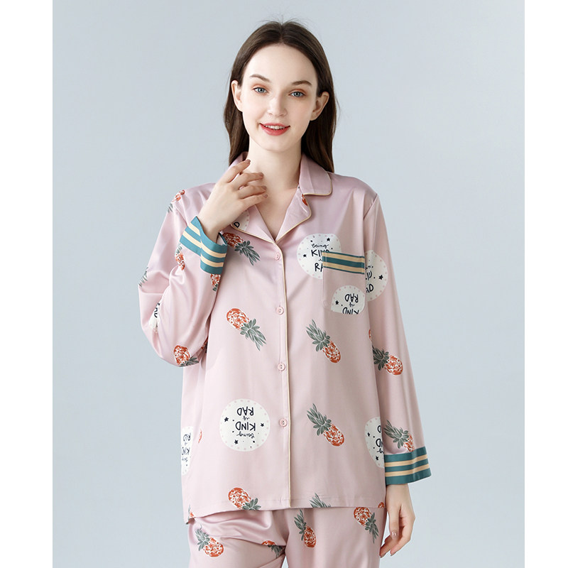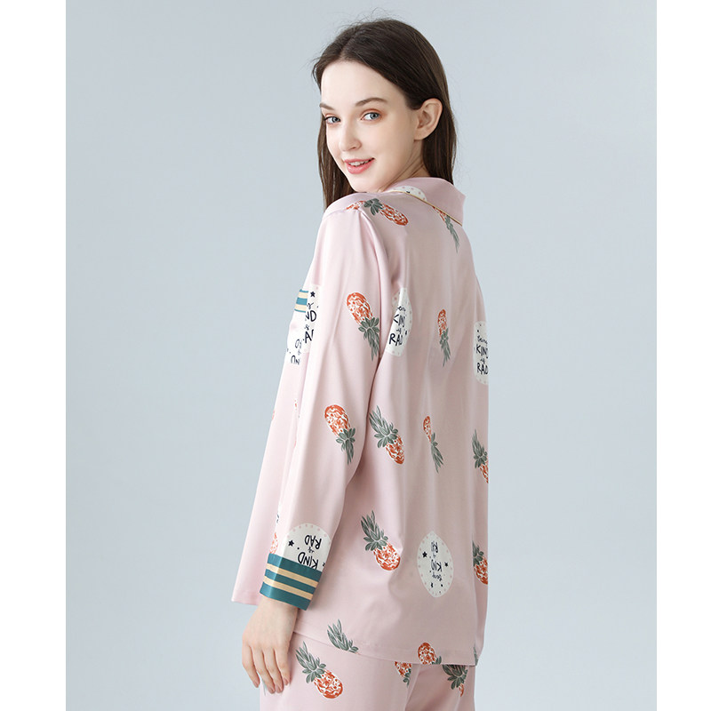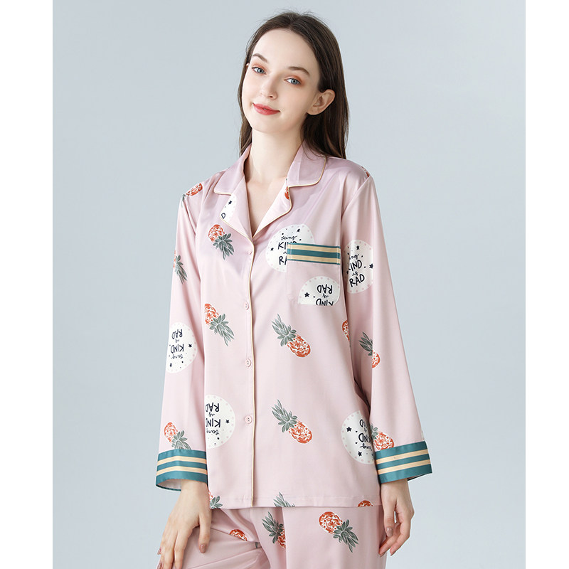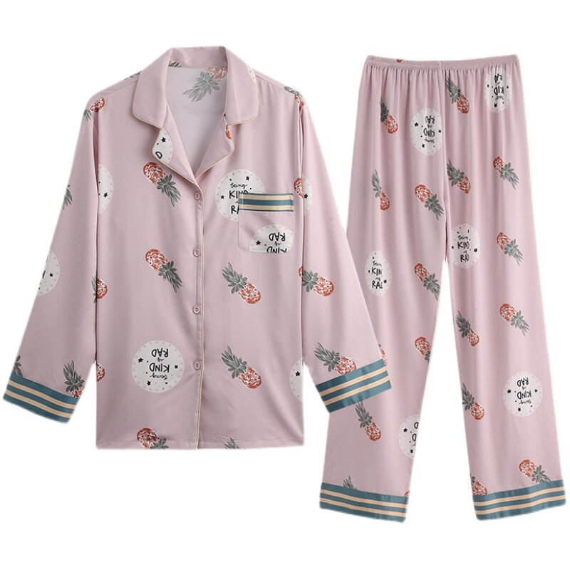IIZZINI 2022 home wear women's spring and autumn long-sleeved ice silk pineapple print sweet trousers loose pajama pants set