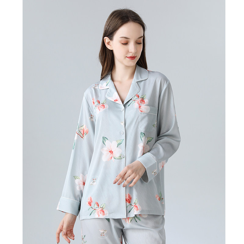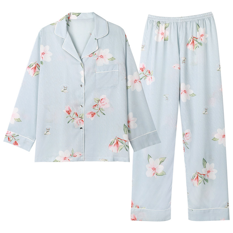 IIZZINI 2023 Pyjamas Female Spring and Autumn Ice Sleeve Ice - sleeve Chinese style - flower luxury 2 pieces of home suit
