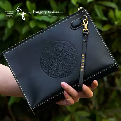 Cangji handmade envelope men and women Chinese style leather carved Gabo clutch leather briefcase