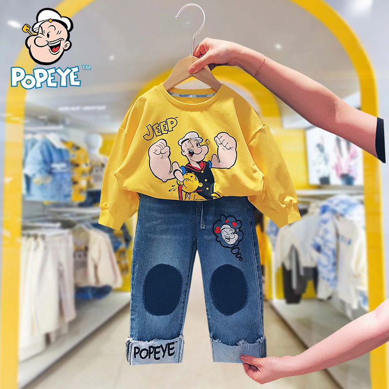 Vigorous sailor POPEYE young children casual blouses with children round neckline blouses 2022 spring new casual headsweaters