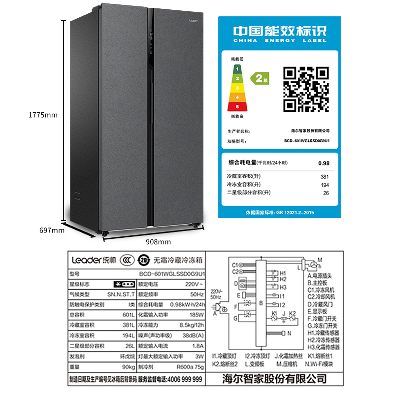 Commander Haier Official 601L Pair Open Door Large Capacity Frequency Conversion Air-cooled Frost-free Domestic Energy Saving Ultra Slim Refrigerator
