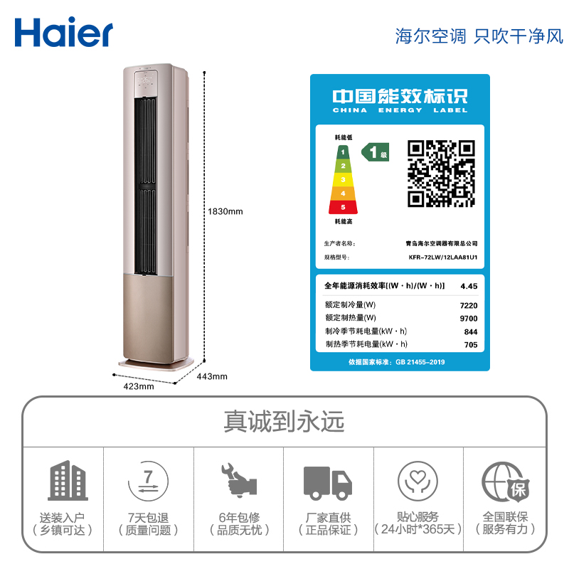 Haier Haier KFR-72LW 12LAA81U1 3 Frequency Conversion First-class Energy Efficiency Cabinet Air Conditioning
