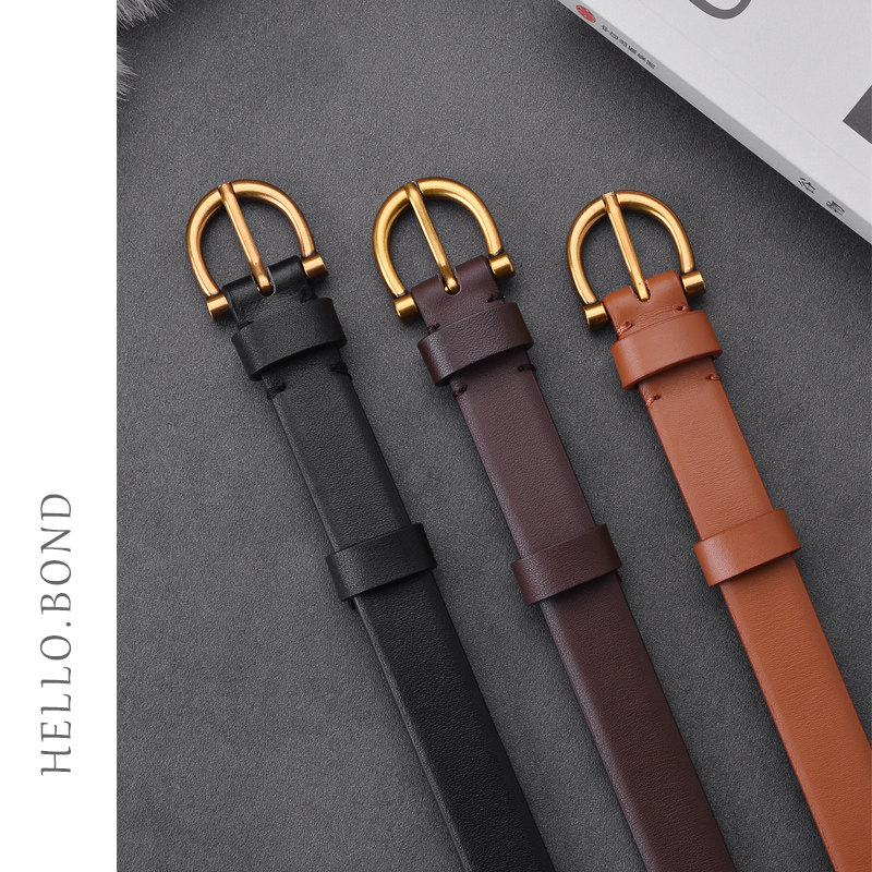 Belt Ladies Leather Fashion Pure Cowhide Versatile Belt Women's Fine Matching Suit Coat Decoration Retro Jeans Belt