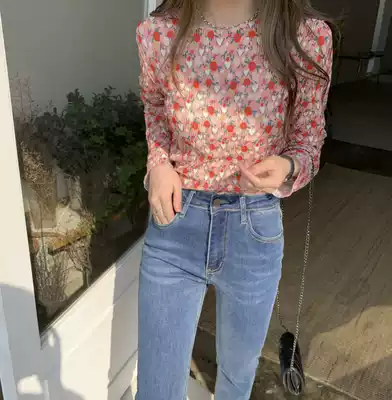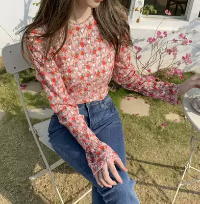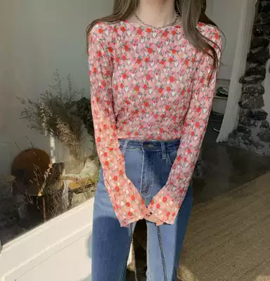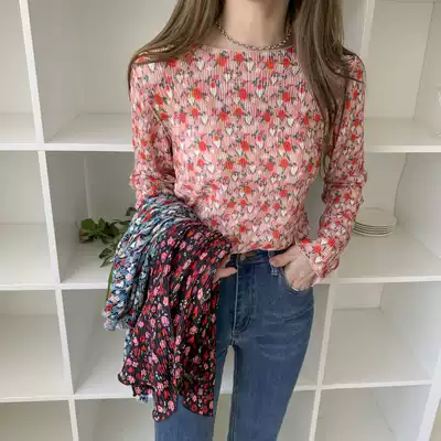 Retro long-sleeved floral bottoming shirt 2021 spring and summer new small shirt T-shirt women's chiffon loose top tide inner match