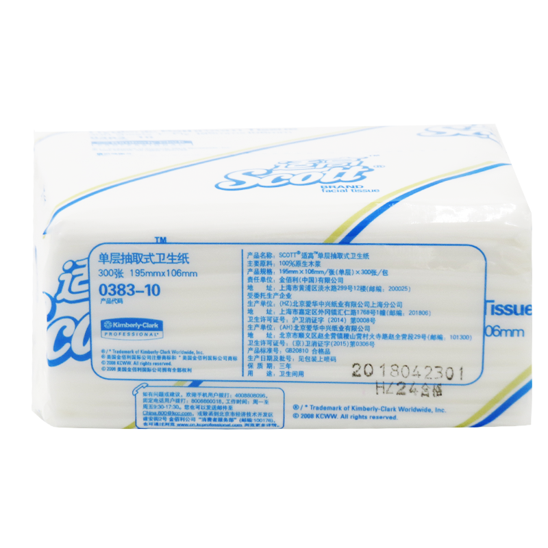 Kimberly 0383-10scott HIGH EXTRACTABLE HYGIENIC TISSUE Toilet Dining Face Towels Soft Removable Toilet Paper 18 Packaging