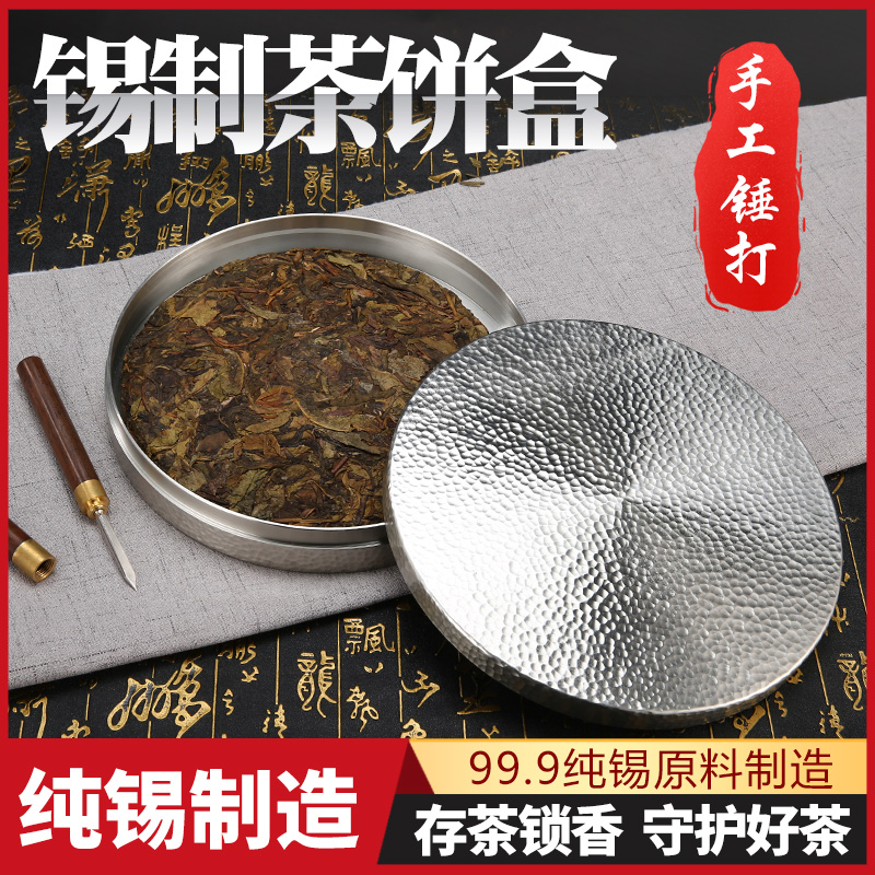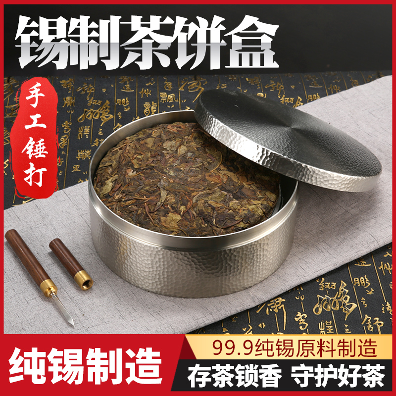 totgn boutique handmade pure tin tea leaf jar Pu-erh tea cake Tin Can Big Store Qigong Tea With Sealed Jar
