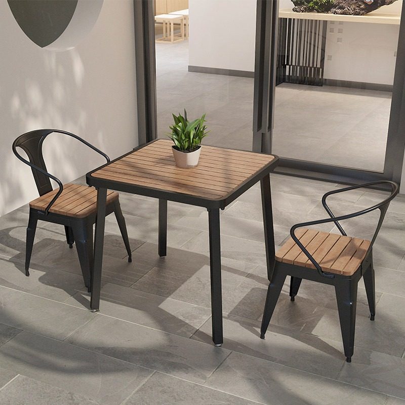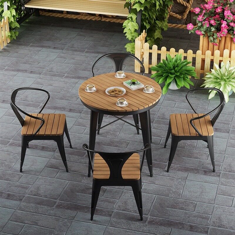 Anti-corrosive sun protection outdoor table and chairs Combined villa garden open table and chairs Cafeteria Leisure outdoor plastic wood dining table and chairs