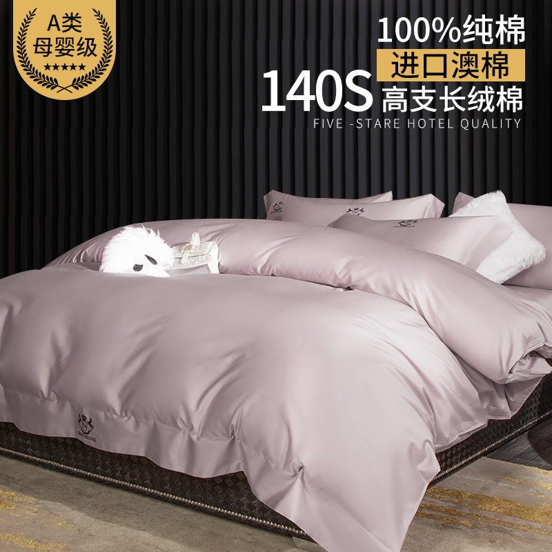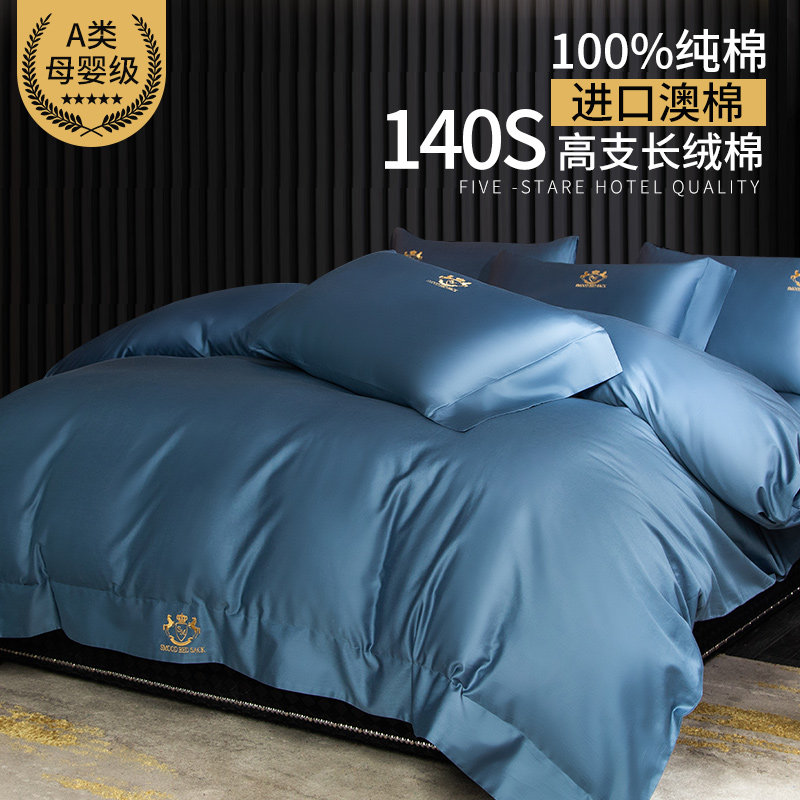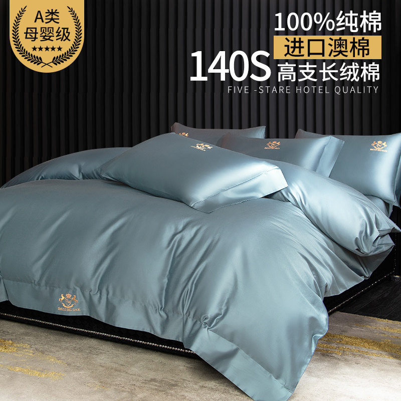 140 long-staple cotton four-piece set 100 cotton pure cotton pure color sheets quilt cover naked sleeping European Hotel bedding
