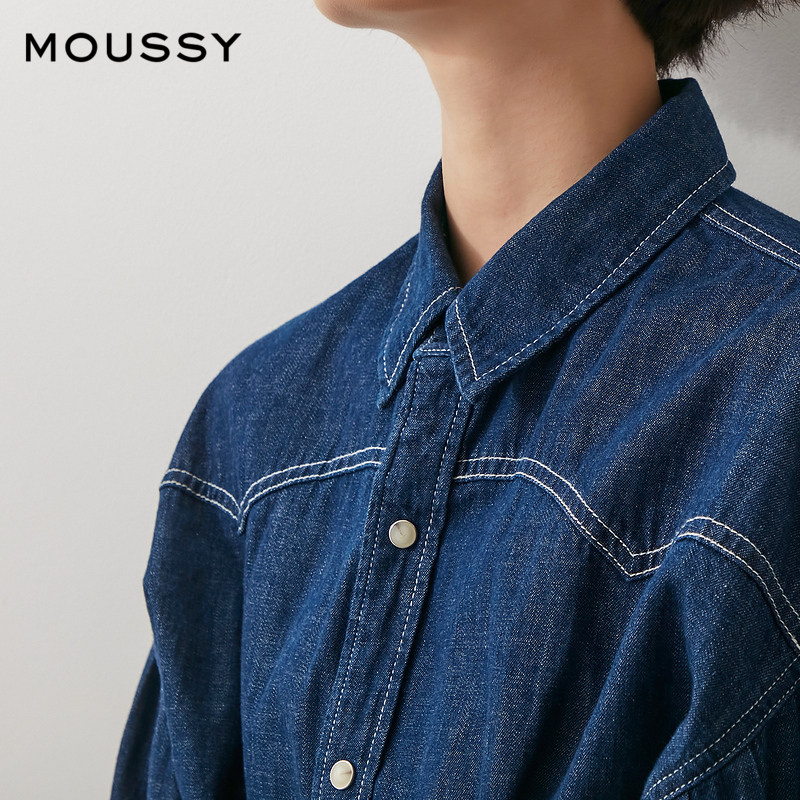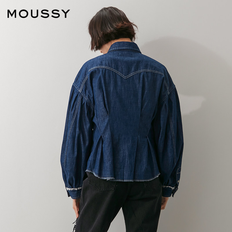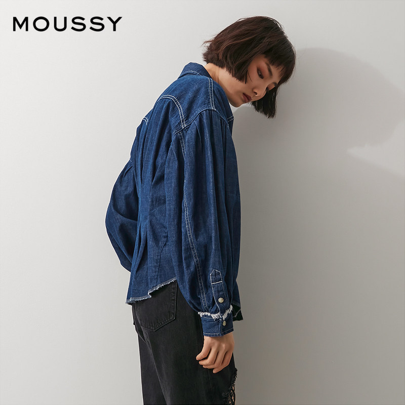MOUSSY early spring lapels lantern sleeves waist-cinching casual denim shirt women's 010ESW11-0290