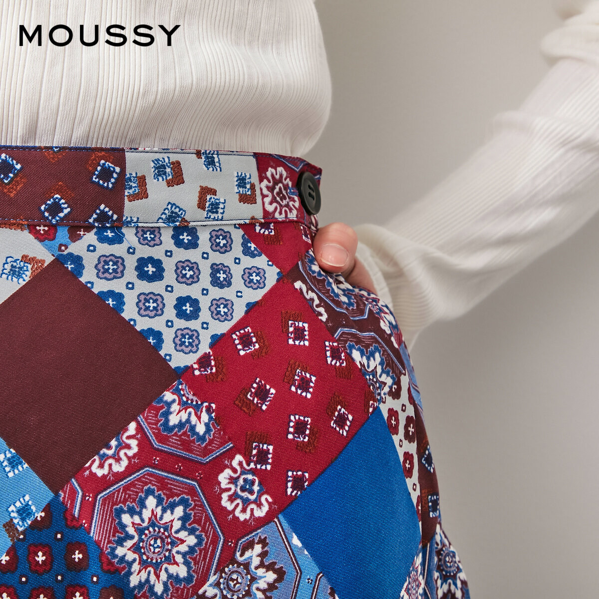 MOUSSY early spring high waist flower color printing large swing half body dress 010ESQ30-1010