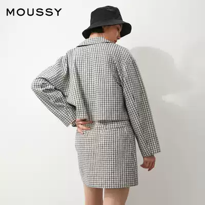 MOUSSY 2021 Spring/Summer New suit collar one button button check casual short coat women 010es730-0830