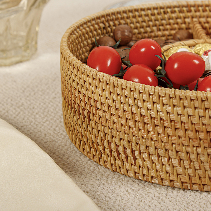 Creative rattan divided nut basket Nordic snack candy box living room household wooden with lid dried fruit melon seed plate