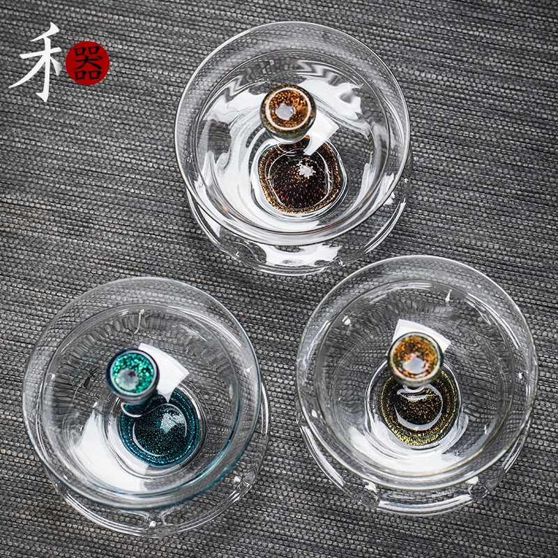 Taiwan Creek Qinlian Cover Bowl thickened high temperature glass cover Single Japanese transparent anti-hot bubble tea bowl
