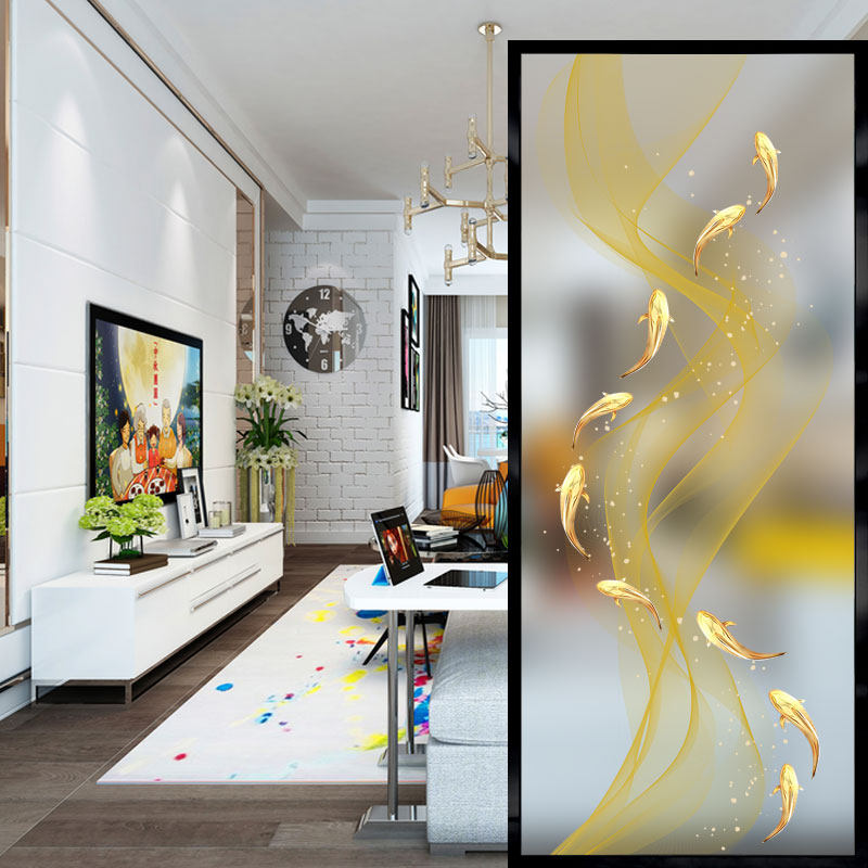 3D Jiuyfish Art Glass screen partition double - sided scrub transmitted temperature chemical process Xuanguan living room decoration wall