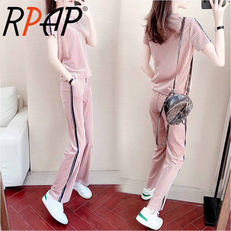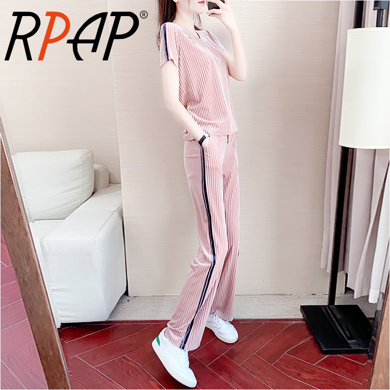 RPAP Sports Suit Women Summer 2021 Fashion Loose Foreign Pie V Collar Short Sleeve Blouse Blouse Two Pieces