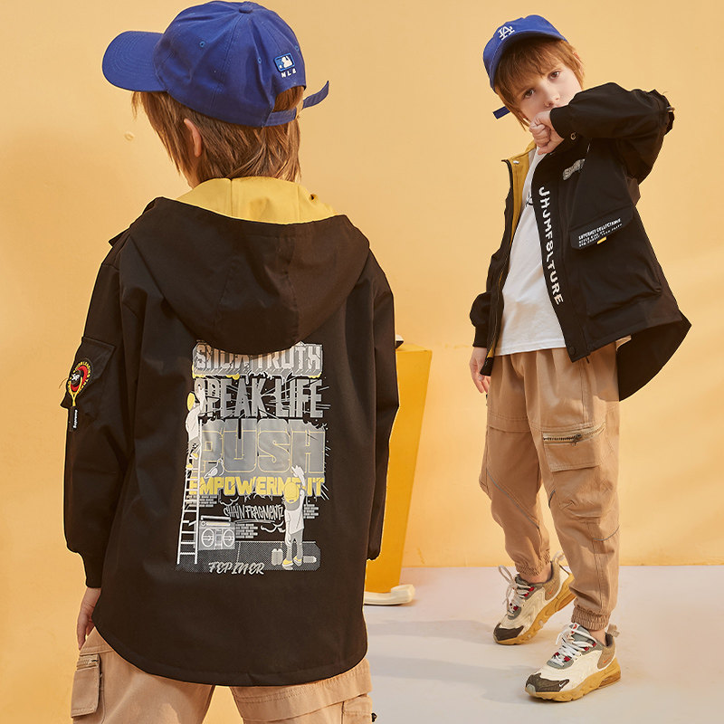 Snowy Fly Boy Coat Children Jacket Boy's Jacket Boy Tide Spring Autumn CUHK Boy Windsuri Polo 2021 New Ocean Wave