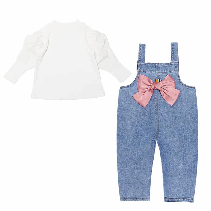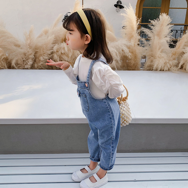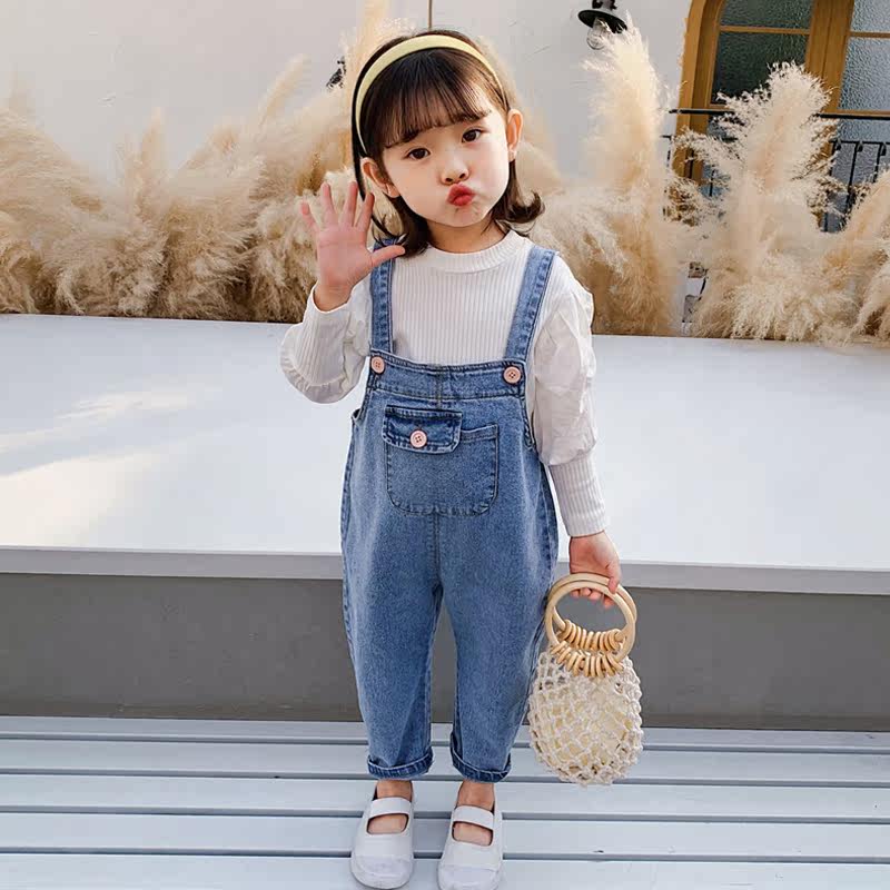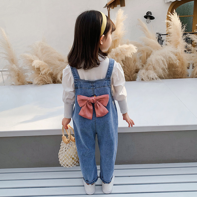 Girl Spring Clothing Suit Spring Autumn 2021 New Foreign Pie Sports Children Clothes Woman Baby Mesh Red Denim Cuddling Bag Pants