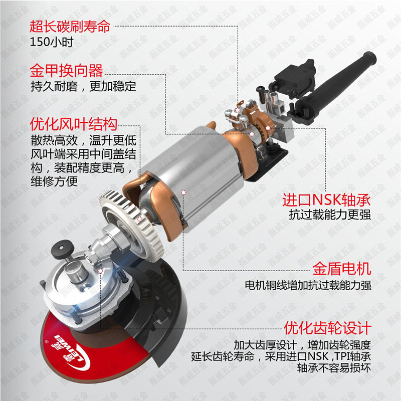 Magnificent Rewai plug-in electric angle mill high-power hand-grinding machine grinding wheel polished and polished notched multifunctional cutting machine