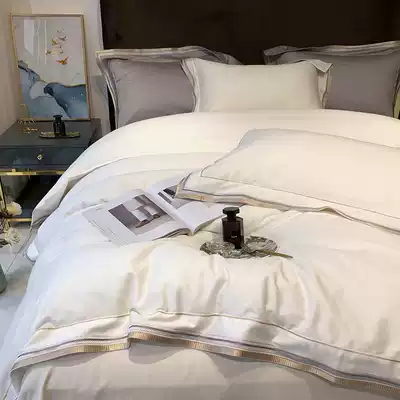 Simple solid color embroidery plush cotton satin summer four-piece set Cotton pure cotton quilt cover bed single bed double bed bedding